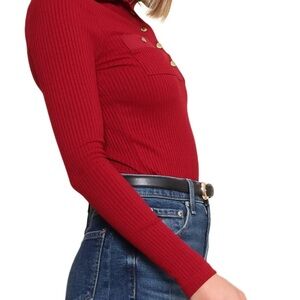 Ladies Ribbed top w collar snaps in LongSleeves