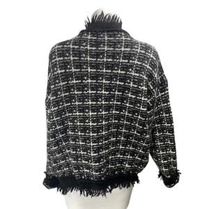 Robertson + Rodeo Women's Black Wool Tweed Fringe Knit Cardigan Sweater Top M/L