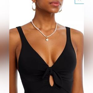 Robin Piccone Ava Plunge Neck Tie-Front One Piece Swimsuit size 8