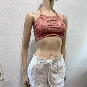 Robin Piccone pink crochet halter top with adjustable tie back #crochet