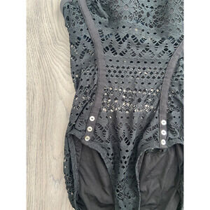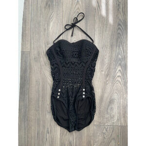 Robin Piccone One-Piece Swimsuit Women's 6 Black Penelope Crochet Overlay