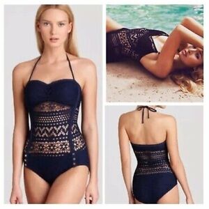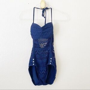 Robin Piccone Penelope crochet BLUE one piece Sm