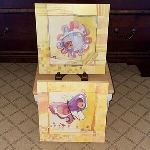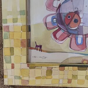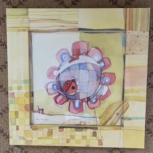 Robin Rawlings signed **set of 2 frames** yellow watercolor prints. Signed by artist. First is a butterfly, second is a flower w ladybug. Never used excellent condition. Slight marks and pin holes on back lining due to display. 11.5” x 11.5”