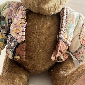 This Robin Rive teddy bear is a must-have for collectors and bear enthusiasts. Made in New Zealand, this 15-inch jointed bear features a classic brown color and comes dressed in a stylish jacket. The bear's eyes are black, and it has a vintage look that will make it a great addition to any collection.