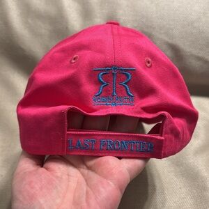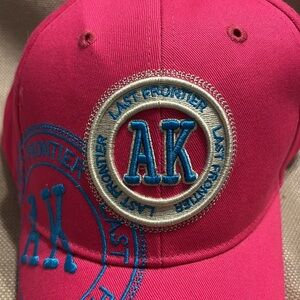 New baseball cap. Embroidered with AK Last Frontier. Hook & loop back closure. 100% cotton Color Pink