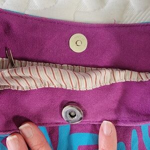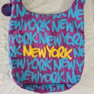 Robin Ruth Canvas Shoulder Bag New York Print Snap Close Purple Blue Gold