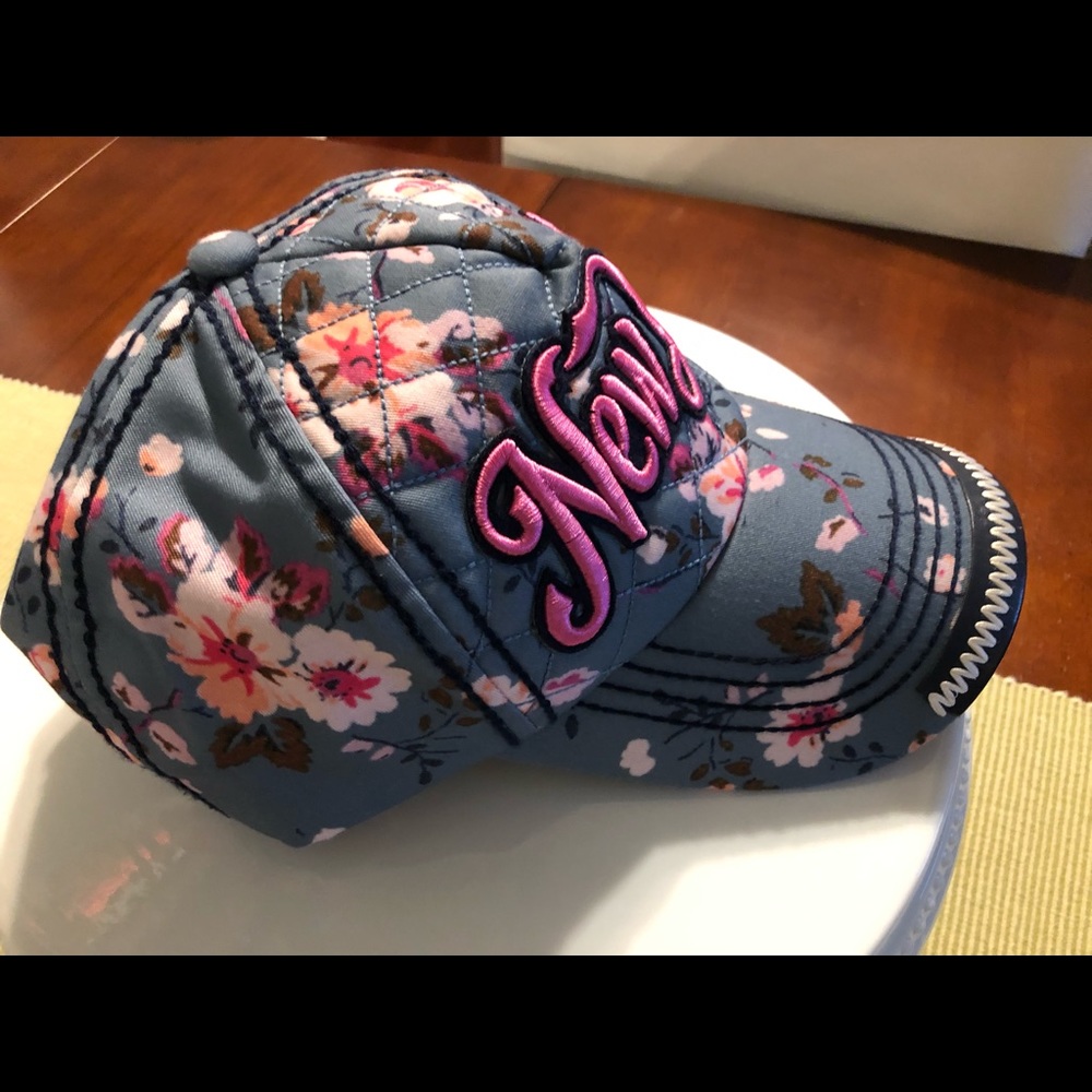 New York floral cap. The cap has an adjustable back for a perfect customized fit. Blue with pink writing