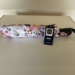 Elegant umbrella with vibrant floral design. Features a mix of watercolor florals on a light background.