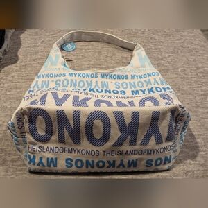 Stylish and spacious Mykonos tote bag in blue and white. Perfect for everyday use or a beach day. NWOT.