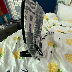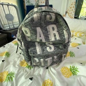 Used gender neutral backpack from Paris. Holds up really well but does get dirty easily :( but it’s really cute and has really good quality along with a good amount of space! I’ve had it for about a year but only used it for a few months. One compartment on the outside and 2 on the inside. It’s an amazing backpack that will for sure draw attention!