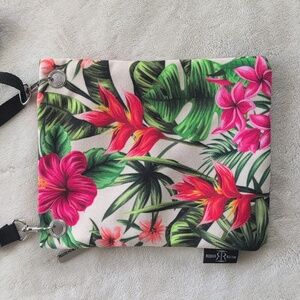 I got this when I visited Puerto Rico, but I haven't really ever used it. It is like brand new! No stains on the inside or outside & both zippers work nicely! Adjustable. Multicolored metallic zipper