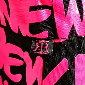 NWOT black , pink, green 3 inside pockets 1 with a zipper closure 35in total length shoulder to bottom off tote 15in W