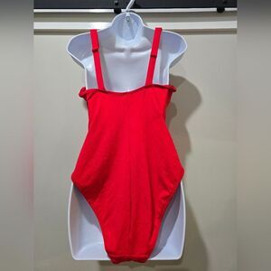 Robin Piccone Ava Plunge Neck Tie-Front One Piece Swimsuit NWT Size 14 Fiery Red