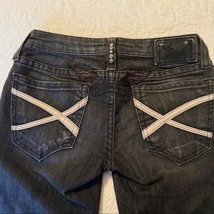 Robin’s Jean Angel Embroidered Leather Trim Bootcut Garbot Jeans