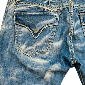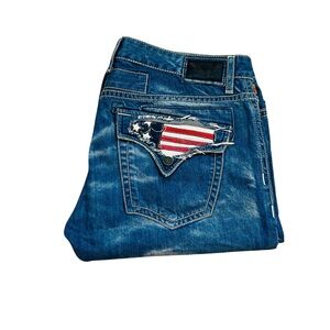 Show off your American pride in these Robin’s Jean men’s distressed denim shorts, featuring a standout American flag patch on the right back pocket. Crafted from 100% high-quality cotton and proudly Made in the USA, these shorts combine rugged style with premium craftsmanship. Gently used and in great condition.