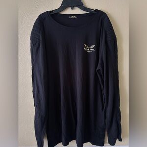Robins Jean Gold Foil Wings Graphic TEE- Shirt with Long Sleeve Shirt Padded Shoulders