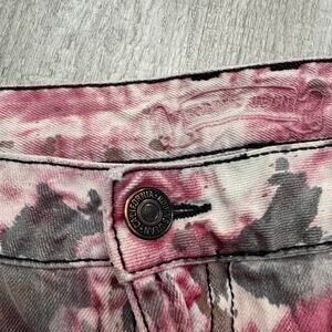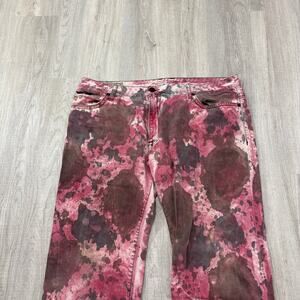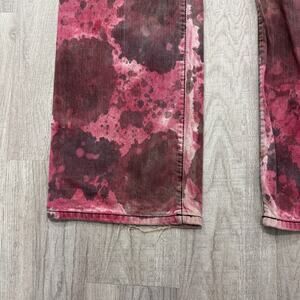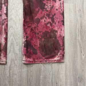 Stylish straight jeans with a unique pink and brown pattern. Perfect for a bold look.