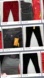 Bold red and sleek black skinny jeans. Features stylish detailing. Perfect for a chic look. $150 each