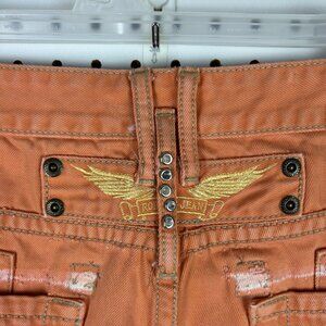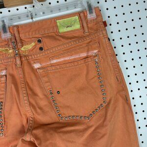 Robin's Jean Rhinestone Rockstar Pants Men's 42x30 USA Made Orange Wings READ