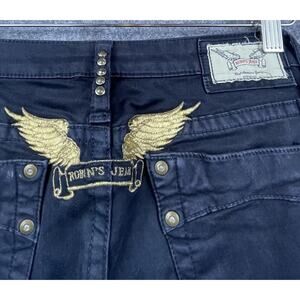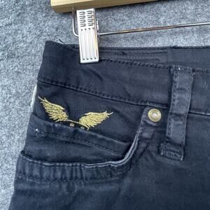 Robins Jean Womens 27 Black Marilyn Gold Angel Wings Embroidered Studded Slim
