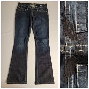 Robin's Jeans 27 Gurbot Bootcut Low Rise Dark Black Wings Embroidered 90's Y2K