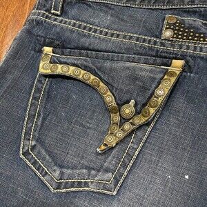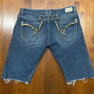 Robin's Jeans Cutoff Denim Blue Flap Pocket Rivets Shorts Men's Size 40
