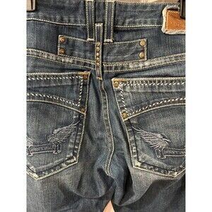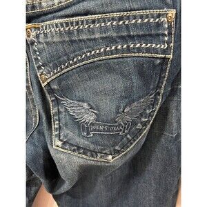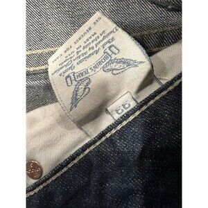 Navajo. Robin's Raw Denim collection boot cut raw indigo denim jeans for men. This boot cut jean features pockets and front pockets decorated with natural color oversized saddle stitch. The jeans are consctucted using premium unwashed rigid denim for durability and style and come with contrast natural color stitching. Mild boot cut to straight leg design Unwashed raw indigo non-stretch rigid denim Tonal Wings embroidery on each back pocket Saddle stitching on back and front pockets Composition: 100% cotton Mid-rise waist Zip fly closure Retails $245 Mens Size 33 Waist measures 36 Rise 10 Inseam 32 Made in USA