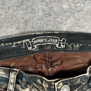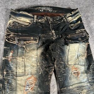 Robins Jeans Mens 34x36 Blue Distressed Acid Wash Moto Ribbed Flap Pocket Stud