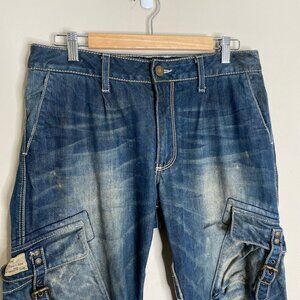 Robin's Jeans Predator Cargo Jeans Slim Curved Leg Distressed Sz 32