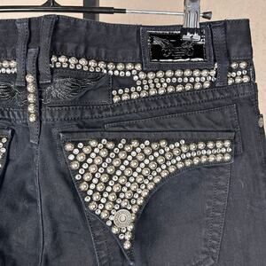 Robins Jeans RARE Mens 36" Straight Fit 100% Cotton Black Denim Long Flap Studded Waist Pants