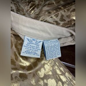 Robin’s Jeans gold on gold Animal print jeans sz 30