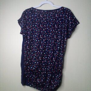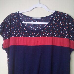 Robin's Nest Shirt Maternity L Short Sleeve Polka Dot Color Block Blue Red