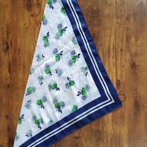 Robinson Golluber VTG scarf white and navy floral approx 21 X 21