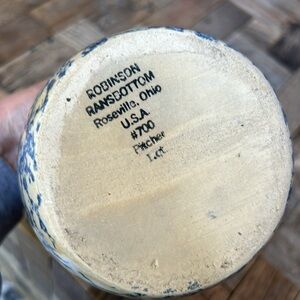 Robinson Ramsbottom Blue Spongewear Pottery. 1 Quart Small Picher. Made in Roseville Ohio USA. This is a charming little pitcher in excellent condition. Approx 6” high