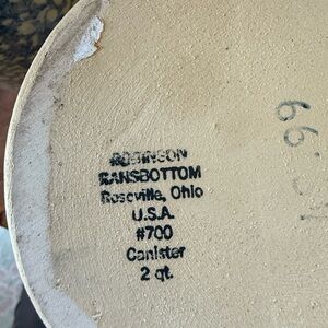 Vintage canister by Robinson Ransbottom. Perfect for kitchen storage. Made in the USA.