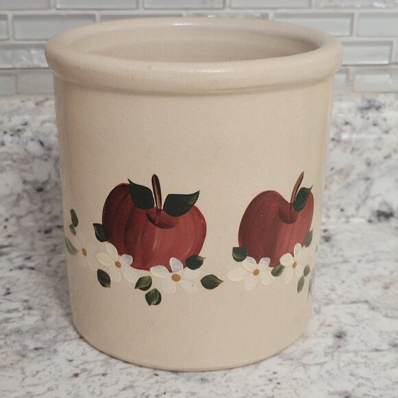 Robinson Ransbottom Hand Painted Apple Design Stoneware Crock Jar 1 Qt