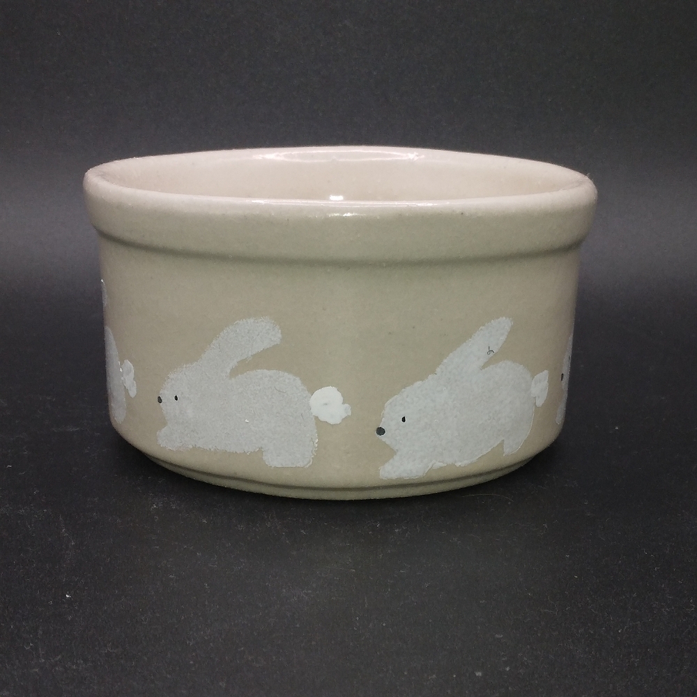 Robinson Ransbottom Handpainted Rabbits Stoneware Small Crock 2 Inch Spring