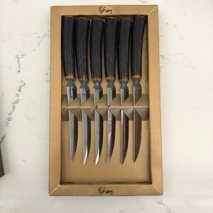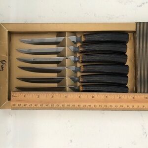 Robinson Steak Knife Set (6) in Original Box VTG-Hollow Antler Style Handles