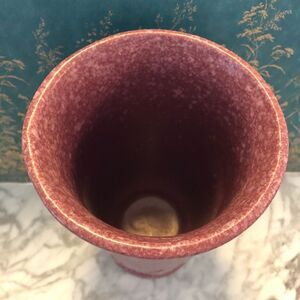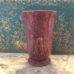 This case is in mint condition. There are no chips or cracks. It has an Art Deco feel to it. It is speckled with pink and white. It stands about 10” high. Made in the USA.