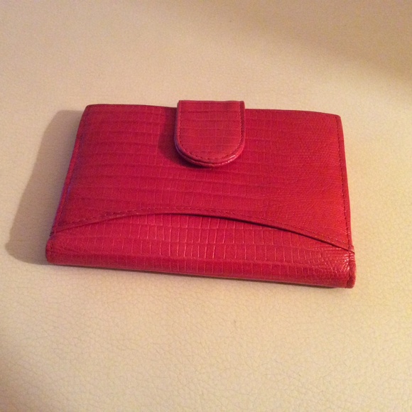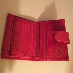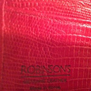 Robinson’s Small Red Animal Texture Leather Wallet. Several Credit Card Slots, and 1 cash compartment. It is very useful and practical for your daily use. All your cards and cash stay safe with minimalist design. Color Red. Appropriate size - 4.06x3. Fit perfectly in your pocket and purse with its own minimalist design. It is light-weight and slim style for handbag, backpack, crossbody, back pocket. Money not included used for demonstration. . Preowned. See pictures.