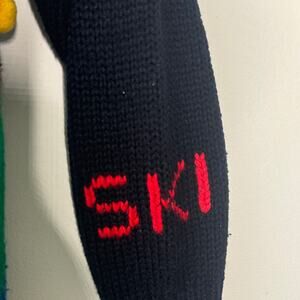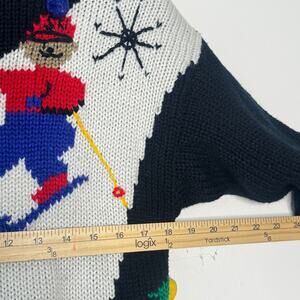 Robinsons Sweater Womens Black Small Ski Print Winter Mock Neck Cabincore Casual