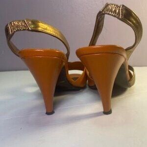 Robinsons Women's Heels - Gold & Orange Brown Strappy Sandals Size 5.5 3-Inch H