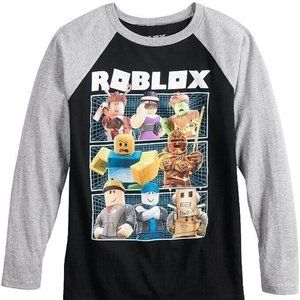 Roblox Youth Boys Multi-Character Black Shirt With Gray Long Sleeves New