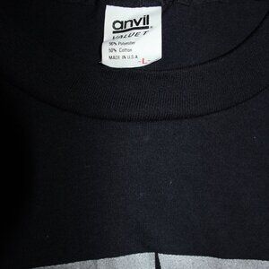 Up for grab is a Robocop 2 1990 vintage promo shirt. NEW CONDITION, NEVER WORN, NEVER WASHED (No retail tag because this was a promo item, not sold at retail). Shirt was made in the USA by the brand Anvil and is 50% polyester / 50% cotton, so please be aware that the material is thin and light because of its 50/50 nature (please see photo # 2 for a close-up of collar tag). Back of shirt is blank (no graphic). SHIRT SIZE IS VINTAGE 1990 ADULT LARGE (it is smaller than today's Large standard) and its laid flat measurements are approximately Width = 20.25 inches and Length = 28.5 inches (please review photos # 4 and 5). Photos are original to this listing and show the actual shirt for sale.