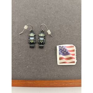 Robot Dangle Drop Hook Earrings Black Enamel BeeBoop Futuristic Kidcore Novelty