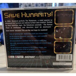 This is a classic shooter game for Sony PlayStation 1, featuring Robotron X. The game is in excellent working order and comes complete with the original registration card. It is suitable for use with NTSC-U/C (US/Canada) consoles and is rated T-Teen. Midway Home Entertainment published this game, and it falls under the Video Games & Consoles and Video Games categories.