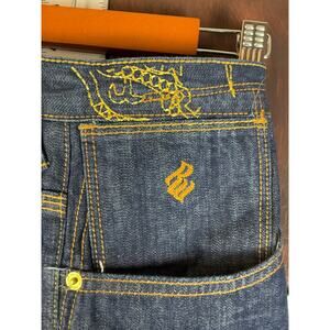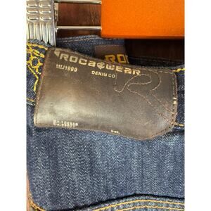 Rocawear Authentic Wide Leg Baggy Y2K Vintage Denim Jeans Blue Gold Mens 38x29