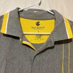 Roca Wear Classic Striped Yellow Gray Polo Size Large Overall Good condition. Inv CB5