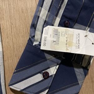 RocaWear Classic Shirt Mens Lg Blue Red‎ Plaid Gold Stitching Button Long Sleeve