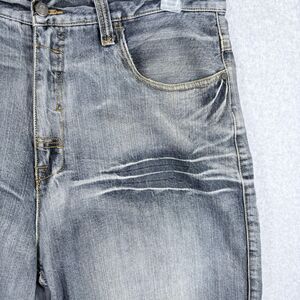 RocaWear Jean Shorts Men 38 Blue Med Wash Whiskering Wide Baggy Hip Hop Y2K